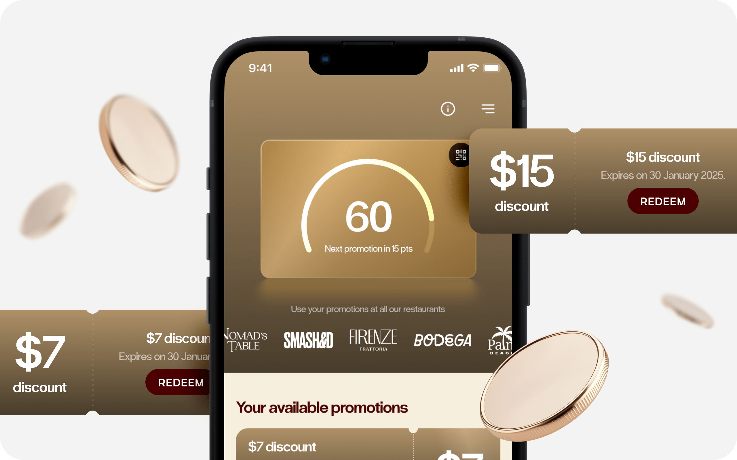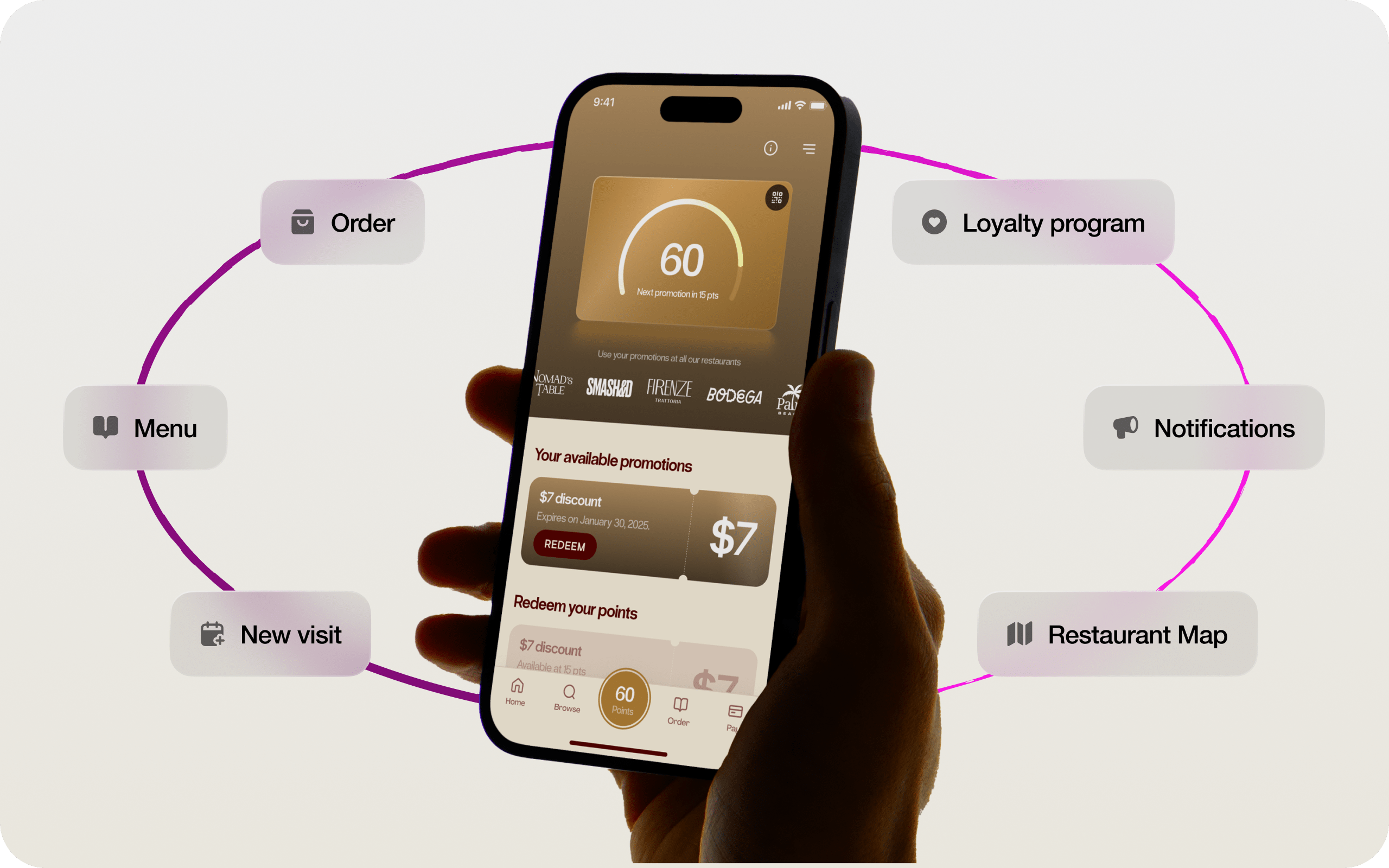 How: A single app that lets guests discover participating restaurants, order, pay, and collect points. Each restaurant gets a white-labeled environment within the app: their branding, their offers, their CRM logic.