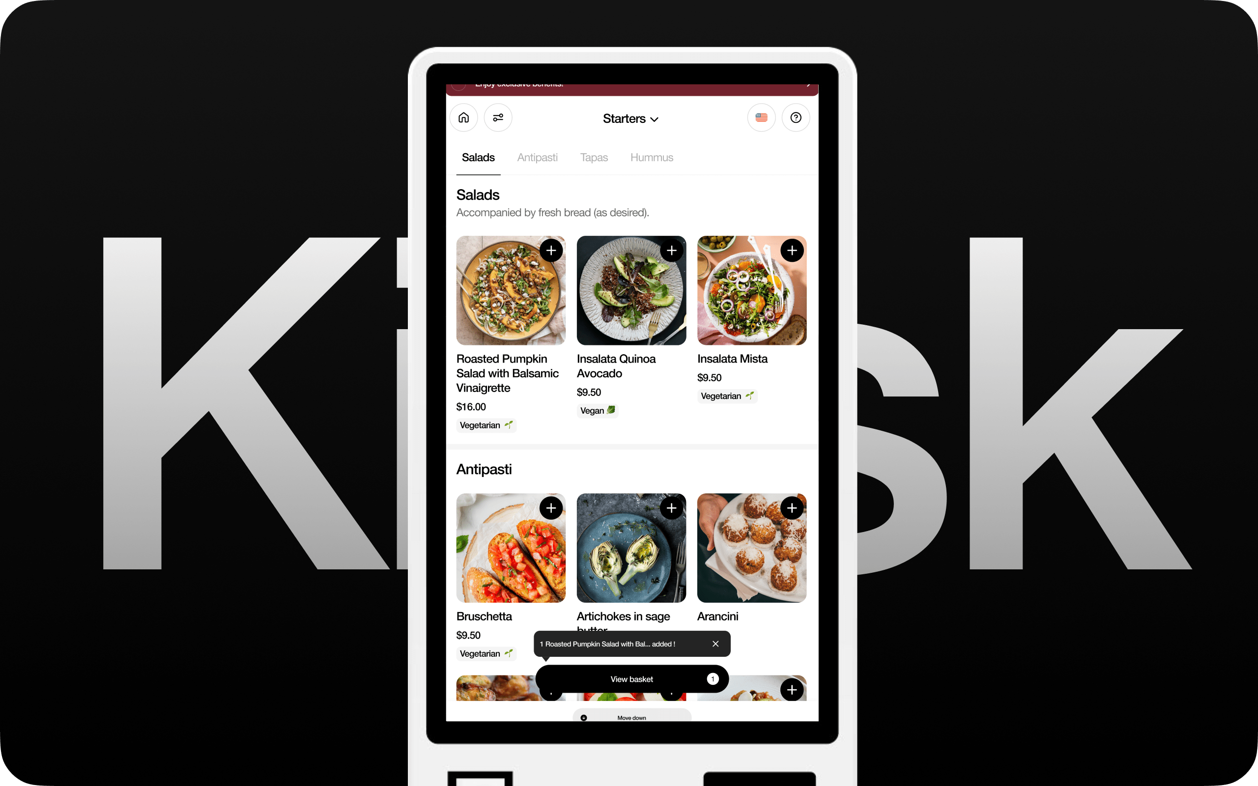 - Built on sunday’s hybrid ordering infrastructure, identical backend for QR, kiosk, or staff orders.