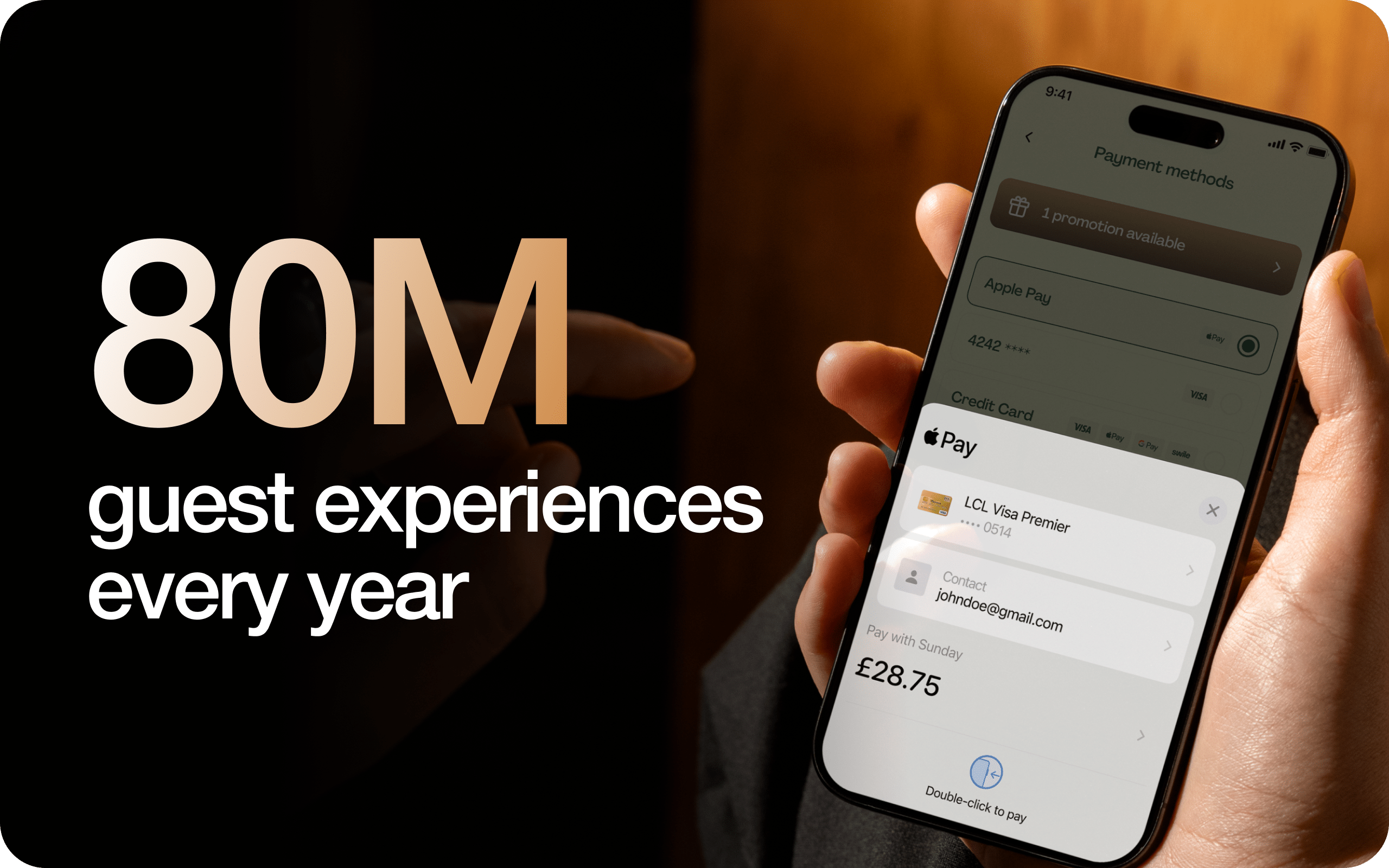 In just four years, sunday has grown into one of the fastest-scaling hospitality platforms in the world: used by 3,000+ restaurants, processing $4 billion in payments annually, serving 80 million guests, and generating over 2 million Google 5-star reviews every year.