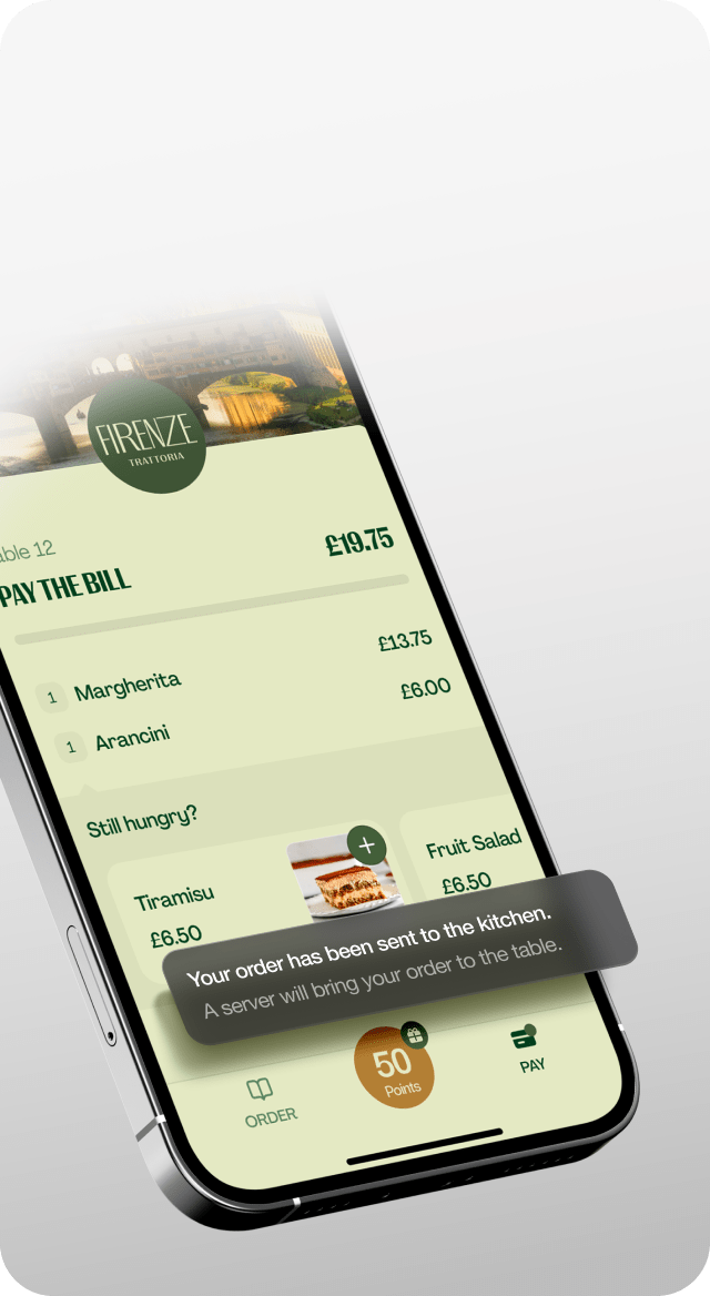 Reorder with ease. At any time, your customer can add a new drink, a dessert, or whatever they want to their bill.