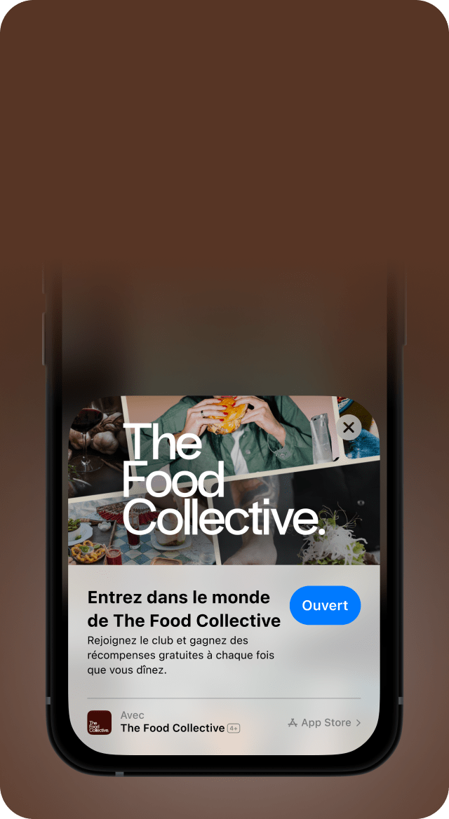 Vos clients iPhone entrent dans votre univers en un geste. Sans téléchargement, sans friction. Juste votre marque.