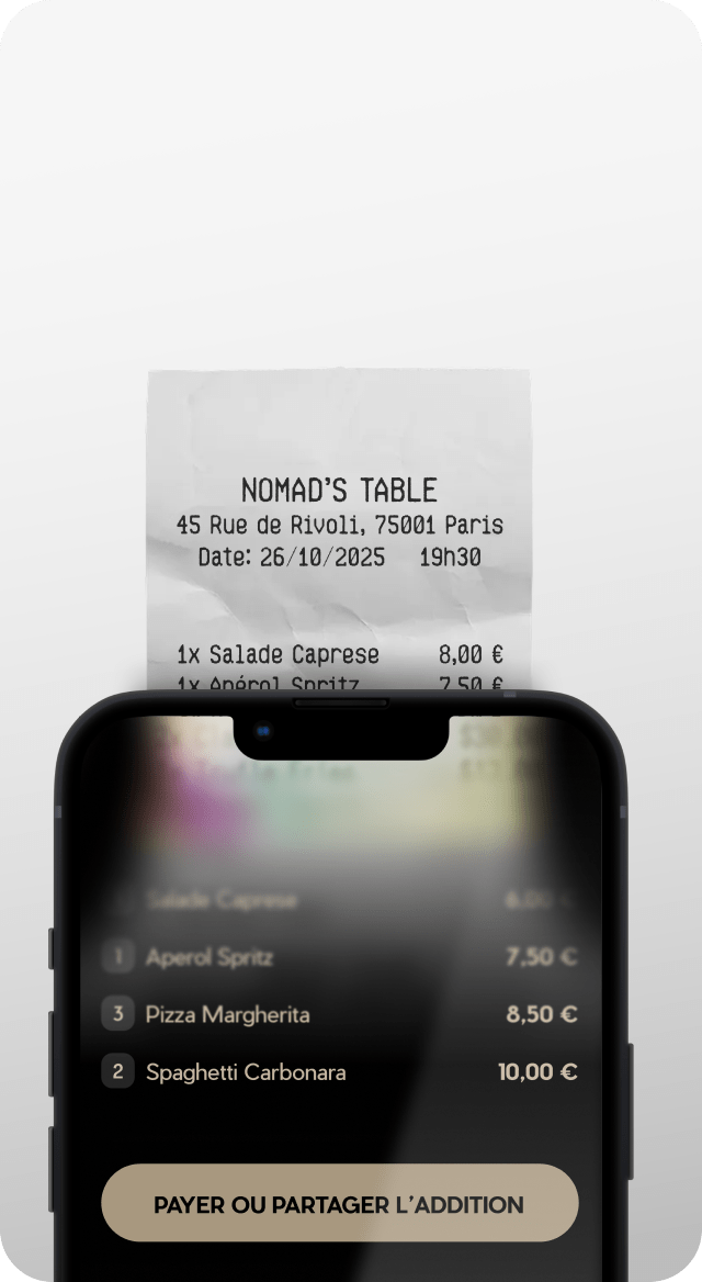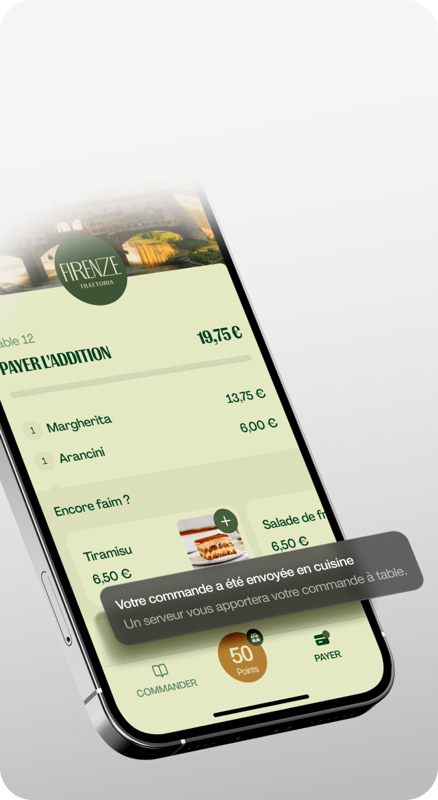 Offrez à vos clients le choix : commander avec un serveur ou via un QR code. Entrée, plat, dessert, ou juste un dernier verre — ils commandent comme ils veulent et règlent l’addition en un scan, sans effort.
