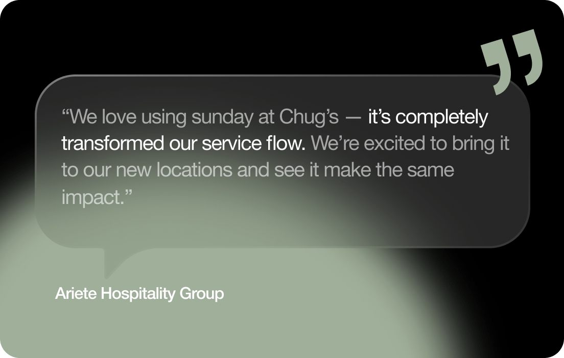 Ariete Hospitality Group is already planning to bring sunday to new locations. The numbers at Chug’s have made the case. If you’re running a high-quality, high-volume restaurant and want to protect your reputation while growing, sunday is built for that.
