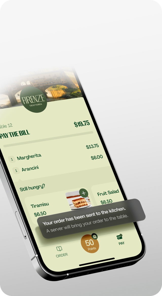 Reorder with ease. At any time, your customer can add a new drink, a dessert, or whatever they want to their bill.